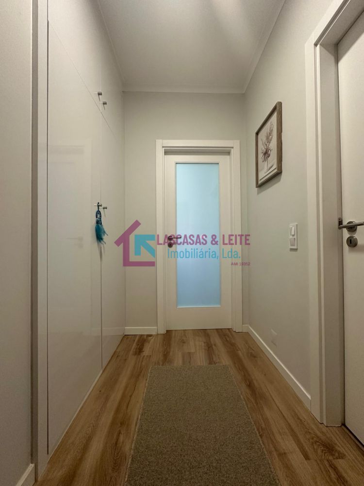 Ao entrar, encontra um hall de entrada com roupeiro embutido que dá acesso direto à casa de banho e à zona social. A sala em open space, integrada com a cozinha, oferece um ambiente moderno e acolhedor, perfeito para o dia a dia, bem como a uma prática lavandaria.